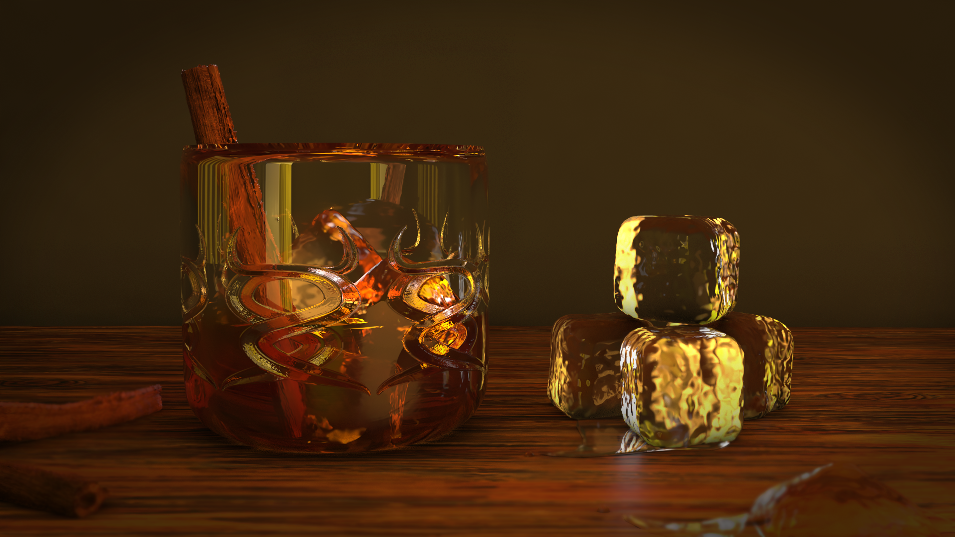 Ce verre de whisky représente ma toute première réalisation complète en matière de modélisation, texturation et éclairage.