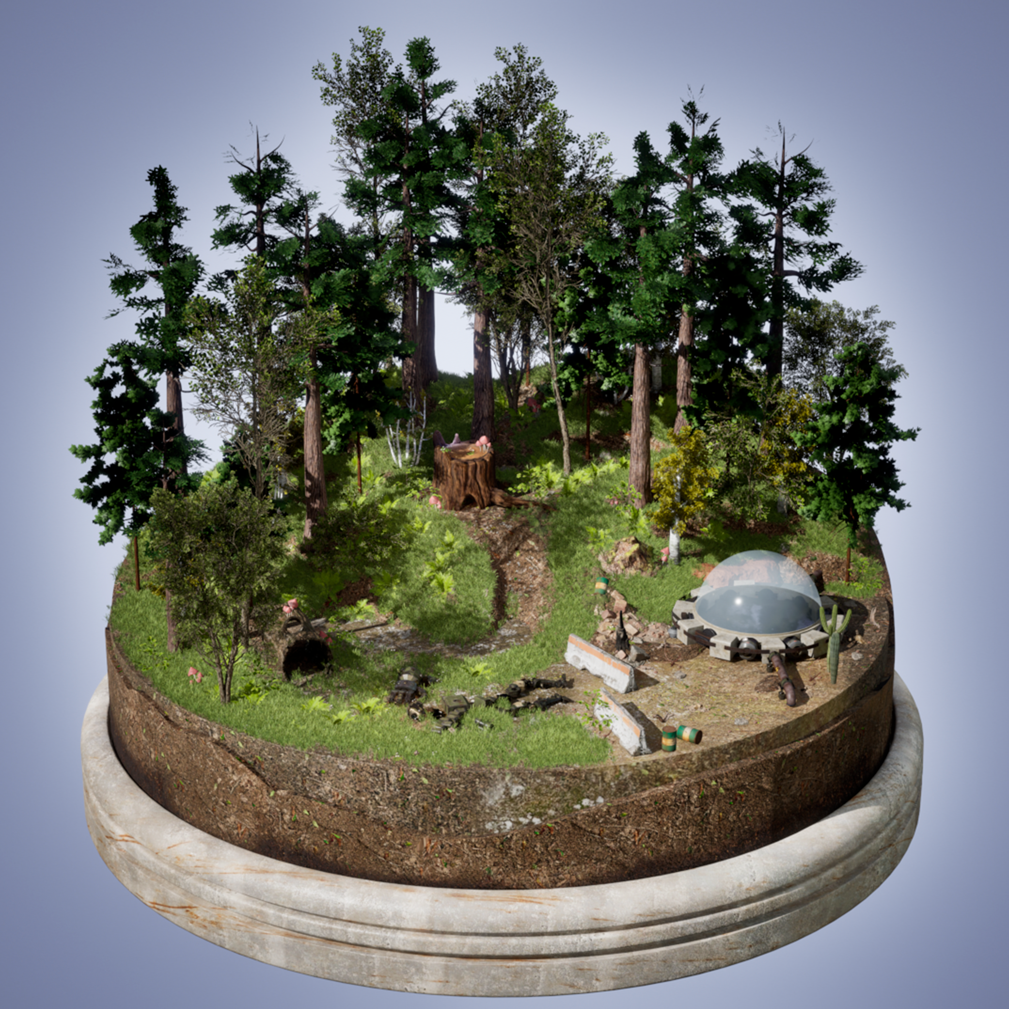 J'ai découvert le logiciel Unreal Engine en autodidacte. Avec ce diorama, j'ai pu compiler mes créations avec certains assets de Quixel Megascan.